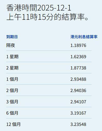 智通财经APP获悉通昭配资,12月1日,港元拆息全线向下,而与楼按相关的一个月拆息连跌两日,报2.93488%,跌24.798基点;反映银行资金成本的三个月拆息报2.94107%,跌23.06基点;隔夜息报1.18976%,跌189.714基点,创5月以来最大跌幅。