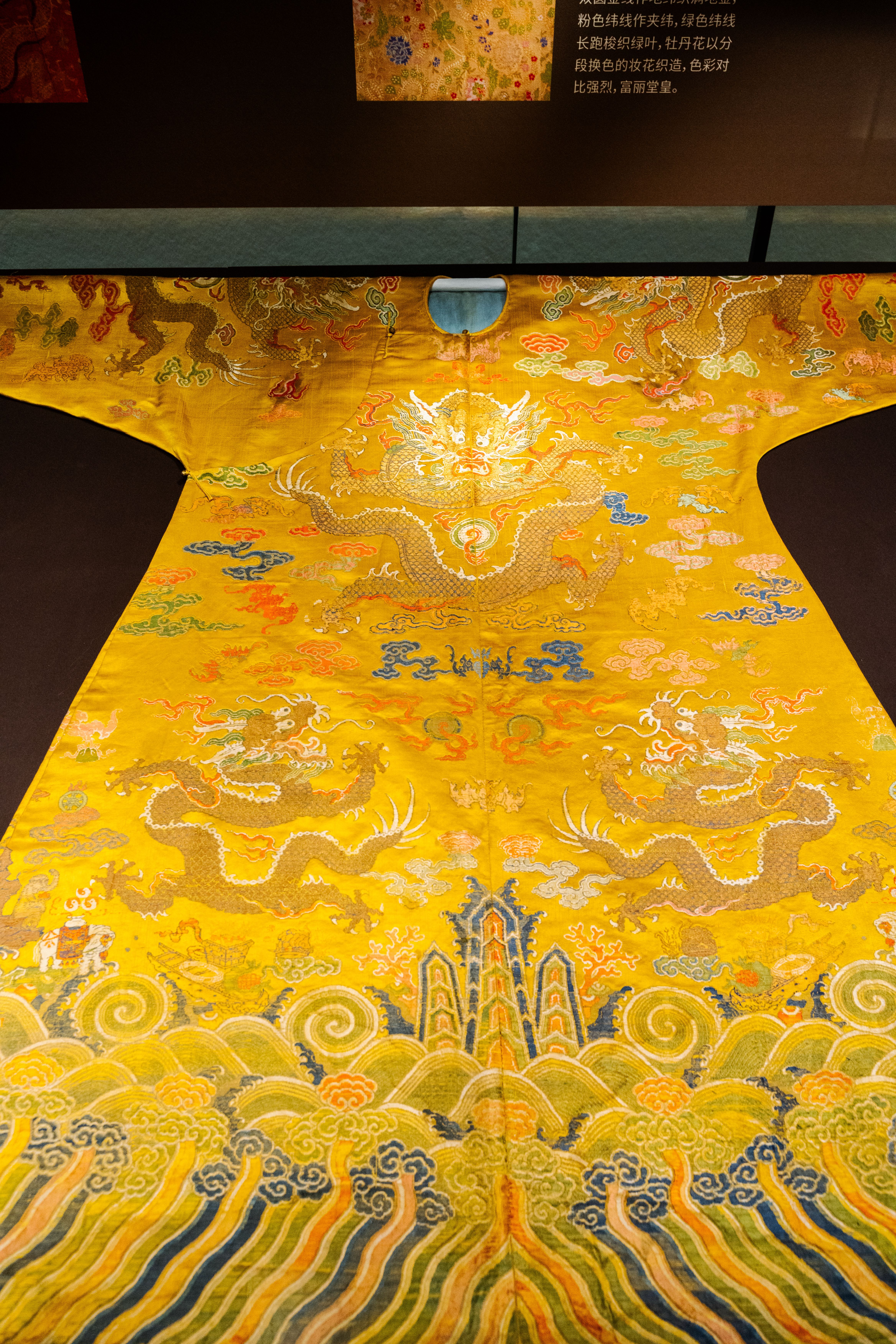 黄地流云蝙蝠纹妆花龙袍 清(1616—1911年)中国丝绸博物馆藏